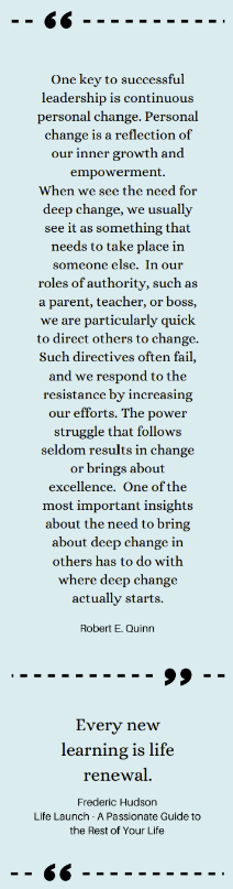 Transforming oneself is a metamorphosis. It is an awakening from stagnation. Deep change isn’t for the faint of heart and has no short cuts or easy answers. It takes time for struggles and renewal. We believe in intense personal development and building capacity to turn toward discomfort and uncertainty. Each person has a different purpose and path and therefore tailored learning is crucial.